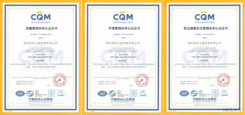 先后通过了质量ISO9001:2015、环保保护ISO14001:2015、职业健康安全ISO45001:2018综合管理体系认证。