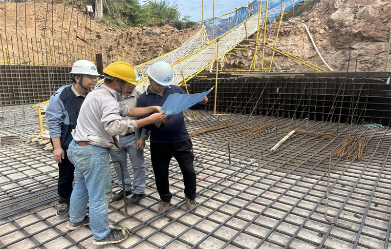 该工程于2023年12月30日正式开工,工程概算总投资18651.76万元。工程主要建设内容为:大坝扩建加高、大坝基础处理、泄水建筑物扩建、重建取水口及输水涵管、新建放空冲砂管及生态流量管。10月4日,监理人员现场检查溢洪道消力池底板钢筋绑扎及排水孔布设情况。